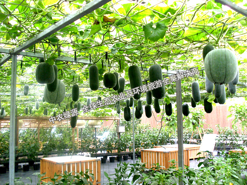 瓜果廊架式栽培 1. 主要由栽培槽支架、钢丝网槽、无纺布、黑白膜、基质袋、给回液管路及隧道式钢丝网架等组成; 2. 可用于各种...